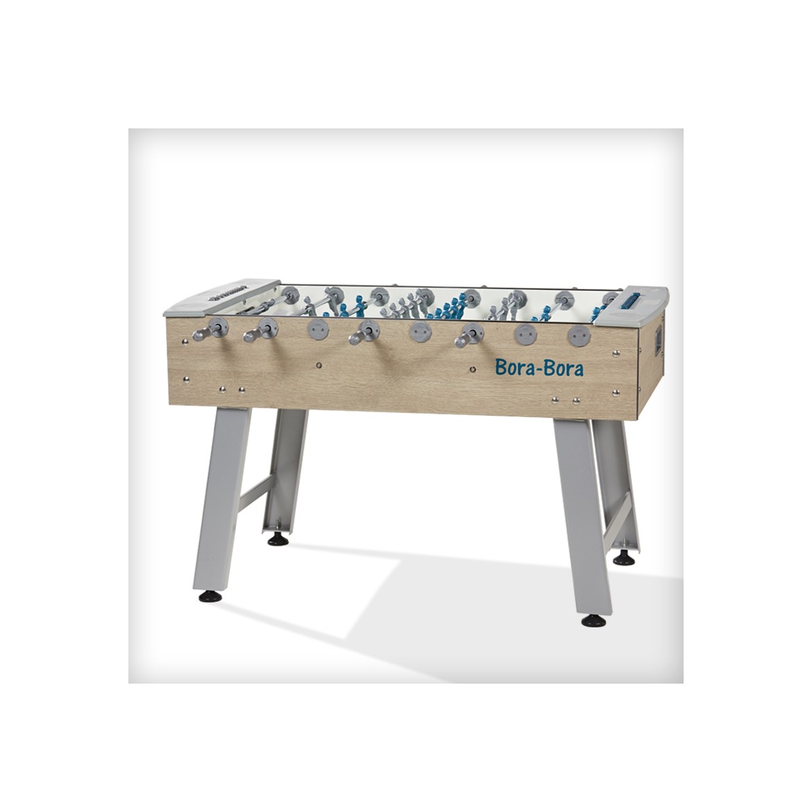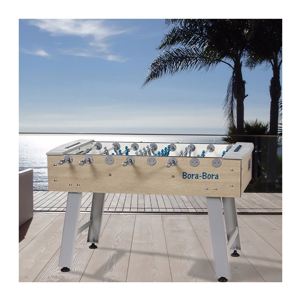 Adapté à un usage extérieur avec des pieds en métal laqué, des barres en acier anticorrosion, un terrain de jeu en gerflex, et une structure en panneau latté stratifié, ce baby-foot très stable possède une très bonne qualité de jeu.