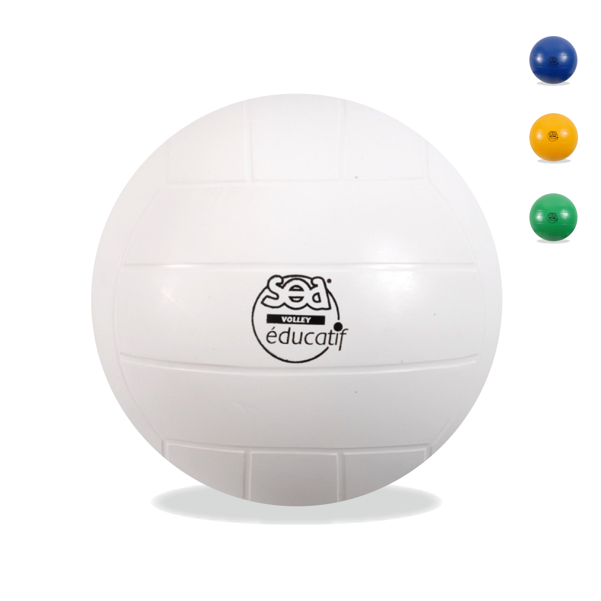 Ballon de Volley Educatif Sea de marque Sportifrance. Ballon de volley éducatif et multi-jeux en PVC moulé (résine polymère et plastifiant). Ce ballon peut être polyvalent et utilisé pour d’autres jeux que le volley. Disponible en 4 coloris (bleu, vert, blanc et jaune) selon stock disponible. Diamètre : 20cm / poids : 220gr.