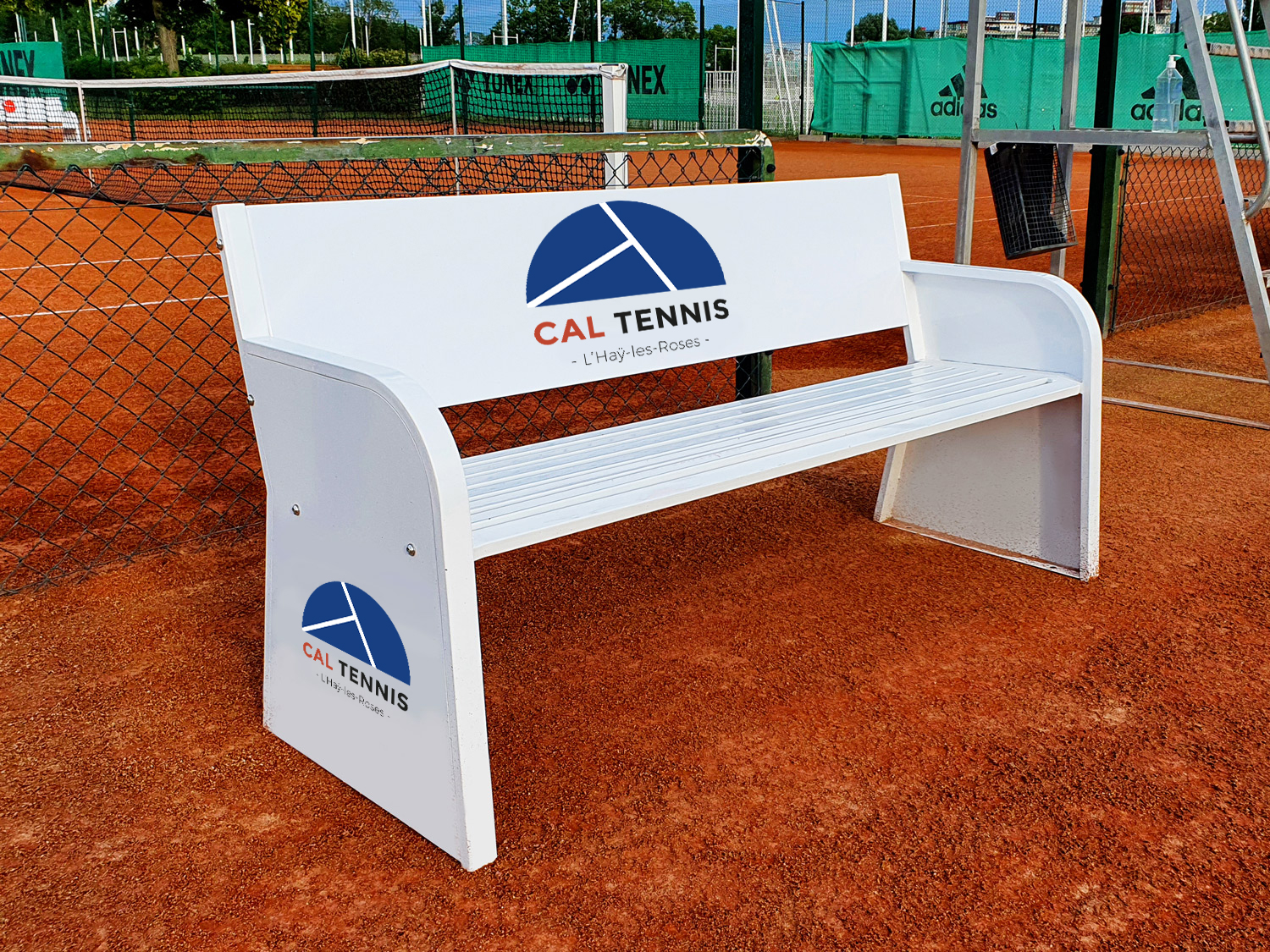 BANC DE TENNIS EN ACIER ELECTROZINGUÉ BLANC PERSONNALISÉ