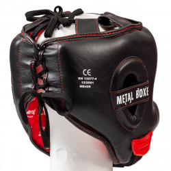 Casque a Barre Sparring de marque Metal Boxe. Casque avec barre de protection de la face. Enveloppe Cuir de haute qualité, rembourrage mousse dense et épaisse apportant un amorti optimum. Ce modèle a été conçu pour les boxeurs soucieux de se préserver avant un combat ou pour une reprise rapide de l’entraînement après une blessure. La doublure matelassée de nouvelle génération assure un grand confort et une très bonne absorption de la sueur. Serrage dessus de tête et arrière par lacets afin d’obtenir un maintien parfait. Bonne visibilité, grande aisance dans les mouvements. Protection maxi, poids mini.