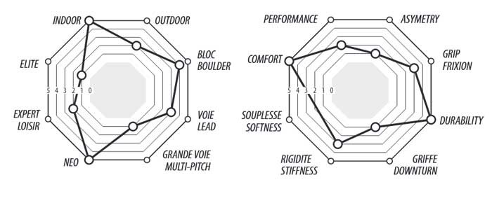 Tige: Toile Polycoton. Utilisation: Falaise, Mur artificiel. Serrage :double velcro. Gomme Optima 4 mm. Taille : 34 au 48 (sans demi-pointure, voir le menu déroulant ci-dessous). Poids : 500 gr. Couleur : Bleu / gris.