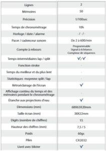 Chronomètre 50 Mémoires Light de marque Digi Sport. Rétro-éclairé. Chronomètre 2 lignes – Mémorisation de 50 temps intermédiaires + cumul temps total – Moniteur de cadence sonore – Compte à rebours + chronométrage jusqu’ à 10h – Compte à rebours jusqu’ à 99 fractions du parcours – Étanche aux projections d’eau – Ecran rétro-éclairé – […]