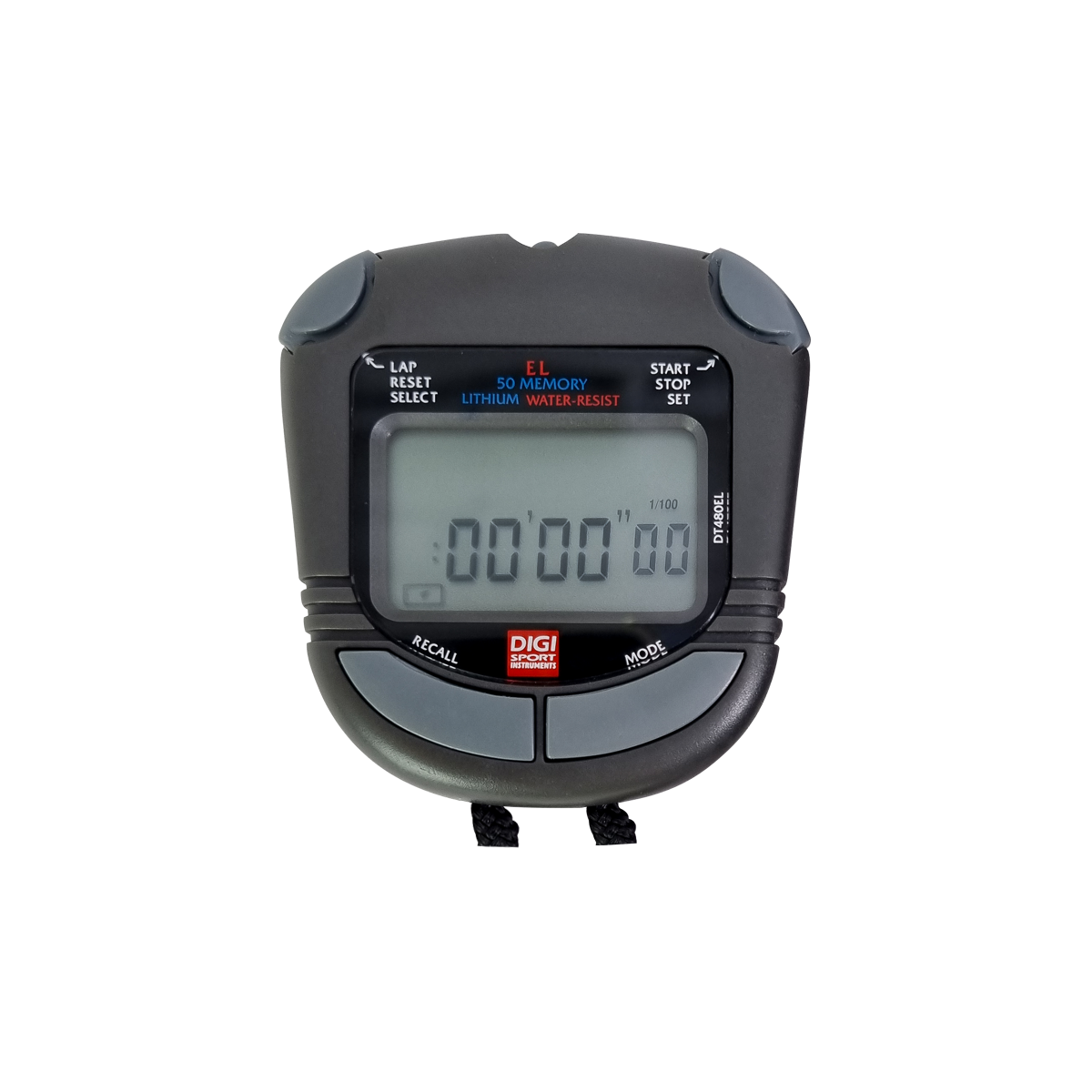 Chronomètre 50 Mémoires Light de marque Digi Sport. Rétro-éclairé. Chronomètre 2 lignes – Mémorisation de 50 temps intermédiaires + cumul temps total – Moniteur de cadence sonore – Compte à rebours + chronométrage jusqu’ à 10h – Compte à rebours jusqu’ à 99 fractions du parcours – Étanche aux projections d’eau – Ecran rétro-éclairé – Pile CR2032 – Dimensions : 68 x 63 x 20mm – Taille de l’écran 38 x 22mm – 15 chiffres – Hauteur des chiffres 7,5 / 5mm – Poids : 60g – Livré avec blister. L’unité.