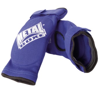 Coudières de marque Metal Boxe. Coudières anatomiques pour la compétition et les entrainements. L’ajout d’un élastique caoutchouc aux deux extrémités permet un maintien qu’aucune autre coudière à ce jour n’avait permis. Serrage du haut par velcro élastique.