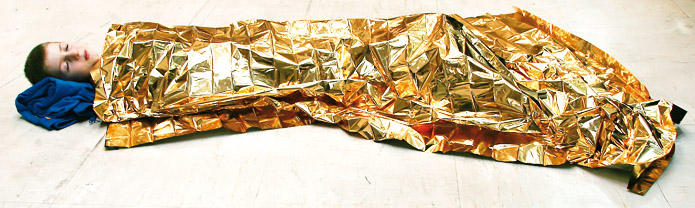 Couverture de survie (or/argent). Dimensions : 160cm. x 210cm.