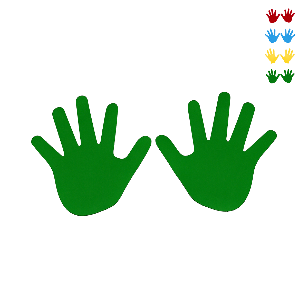 Empreinte Main (La Paire). Empreinte antidérapante en caoutchouc souple et très solide avec un aspect granuleux sur une face (Epaisseur 3mm). Vendu à la paire. 4 coloris disponibles : Bleu, rouge, vert et jaune selon stock disponible.