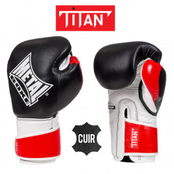 Gants Titan de marque Metal Boxe. Ce gant à la forme type USA a été conçu avec une attention particulière tant au niveau des produits que de son ergonomie. Le pouce est particulièrement protégé ce qui en fait un gant de sparring idéal. Ses mousses préformées exclusives assurent un très grand confort et une absorption adaptée à toutes intensités d’entrainement. Cuir de vachette.