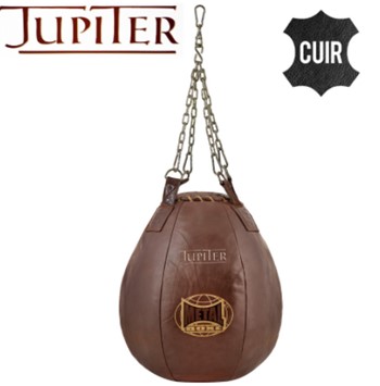 Grande Poire Cuir Jupiter de marque Metal Boxe. Un cuir exceptionnel, un design vintage éblouissant et une fabtication très soignée en font un objet de luxe. Spécialement conçue pour le travail des crochets et des uppercuts. Cuir de buffle 1.5mm de haute qualité, haute finition, teinté au tambour.