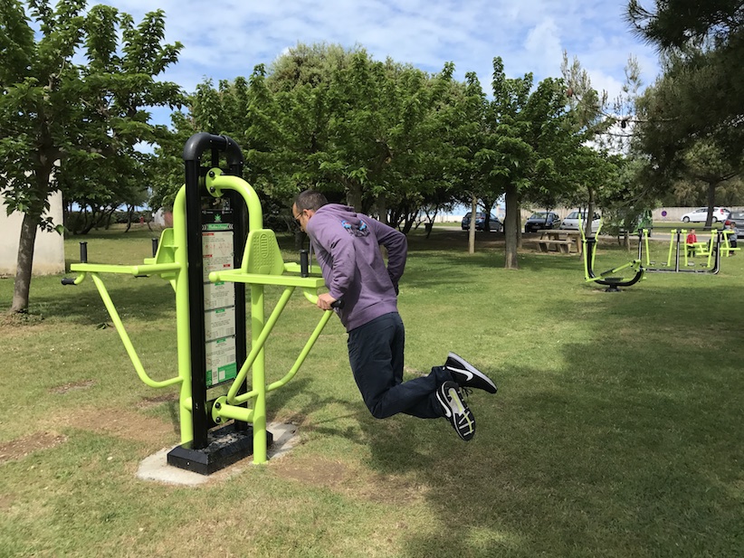 Appareil de fitness de plein air en acier galvanisé thermolaqué.