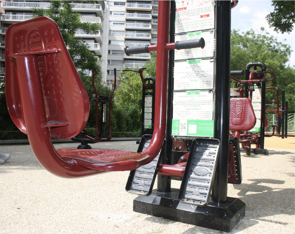 Appareil de fitness de plein air en acier galvanisé thermolaqué.