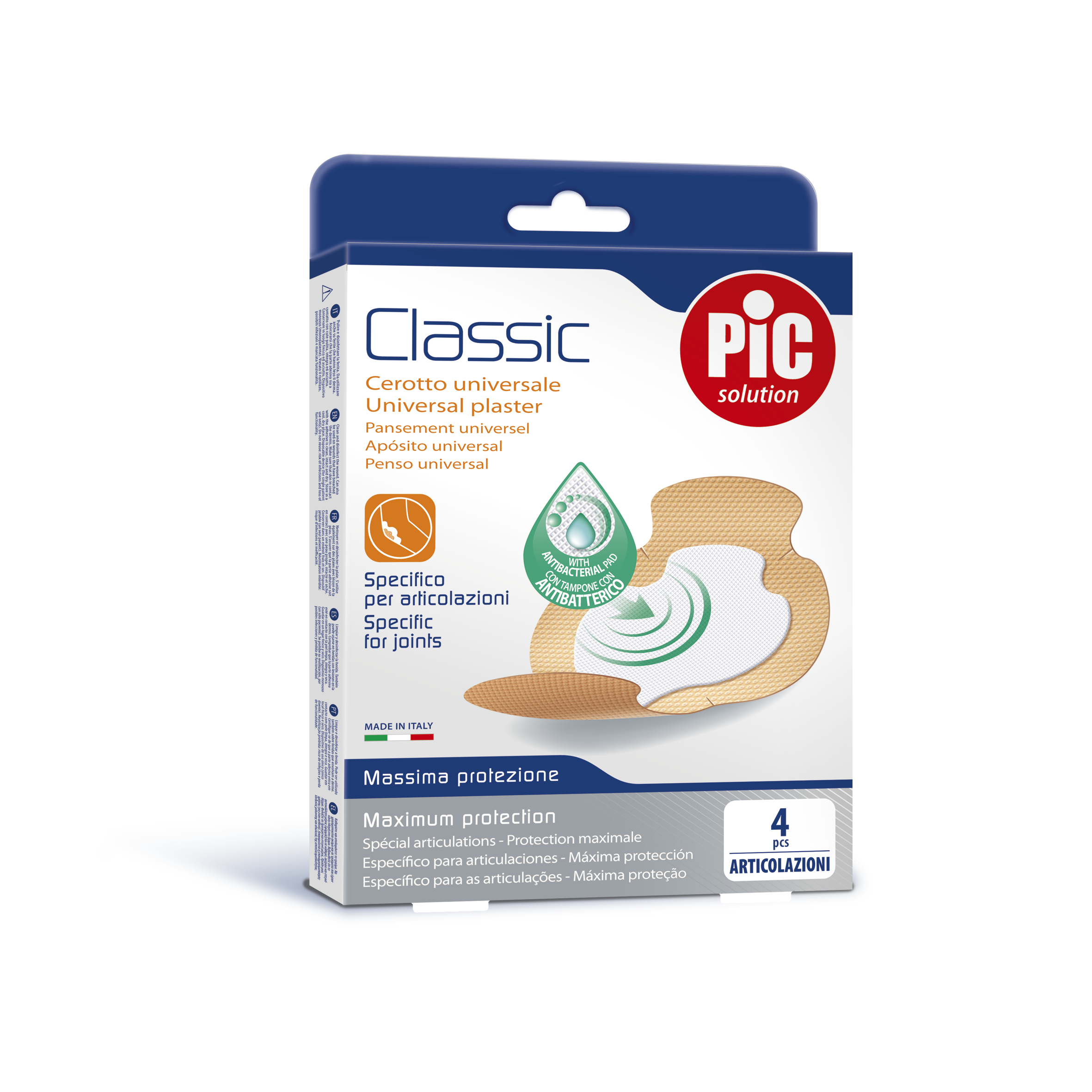 Boite de 4 pansements parfaitement adaptés aux coudes, aux genoux et aux épaules.