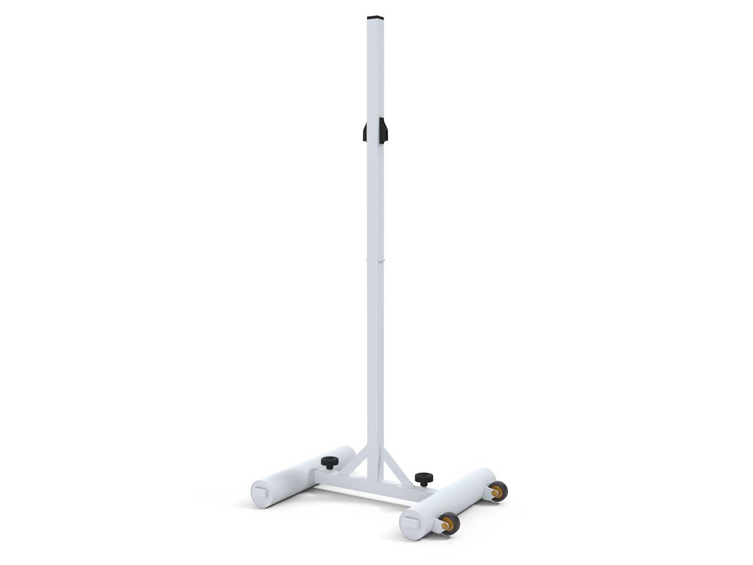 Poteau central scolaire hauteur fixe 40 kg. Gamme scolaire. Conforme NF EN 1509. Poteau mobile en acier de section 40 x 40 mm, plastifié blanc. Adapté à la hauteur de jeu pour le scolaire et la compétition 1.55 m. Le poteau possède une embase de 40 kg soit 45 kg au total. Déport fixe de 72 cm (36 cm de chaque).
