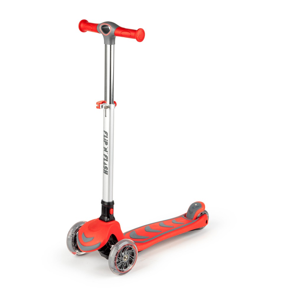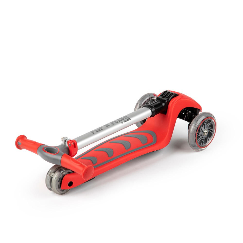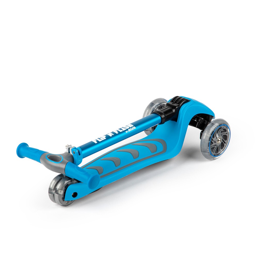 Trottinette tricycle pour les petits (3 à 8 ans). Idéale en collectivités (écoles). Trottinette pliable afin de faciliter son transport et son rangement. Tube avant de direction en alu anodisé. Réglable en hauteur de 63 à 80 cm. Guidon rigide résistant aux impacts. Marche pieds antidérapants. Roues avant diamètre 120 mm avec roulements ABEC 7 et lumières LED intégrées qui s’allument lors des roulages. Roues arrières doubles diamètre 80 mm avec lumières intégrées qui s’allument lors des roulages. Frein arrière. Pour les enfants de 3 à 8 ans. Poids 2.5kg. Charge maximale 50 kg. Coloris vert fluo, rouge, rose et bleu selon stock disponible. L’unité.