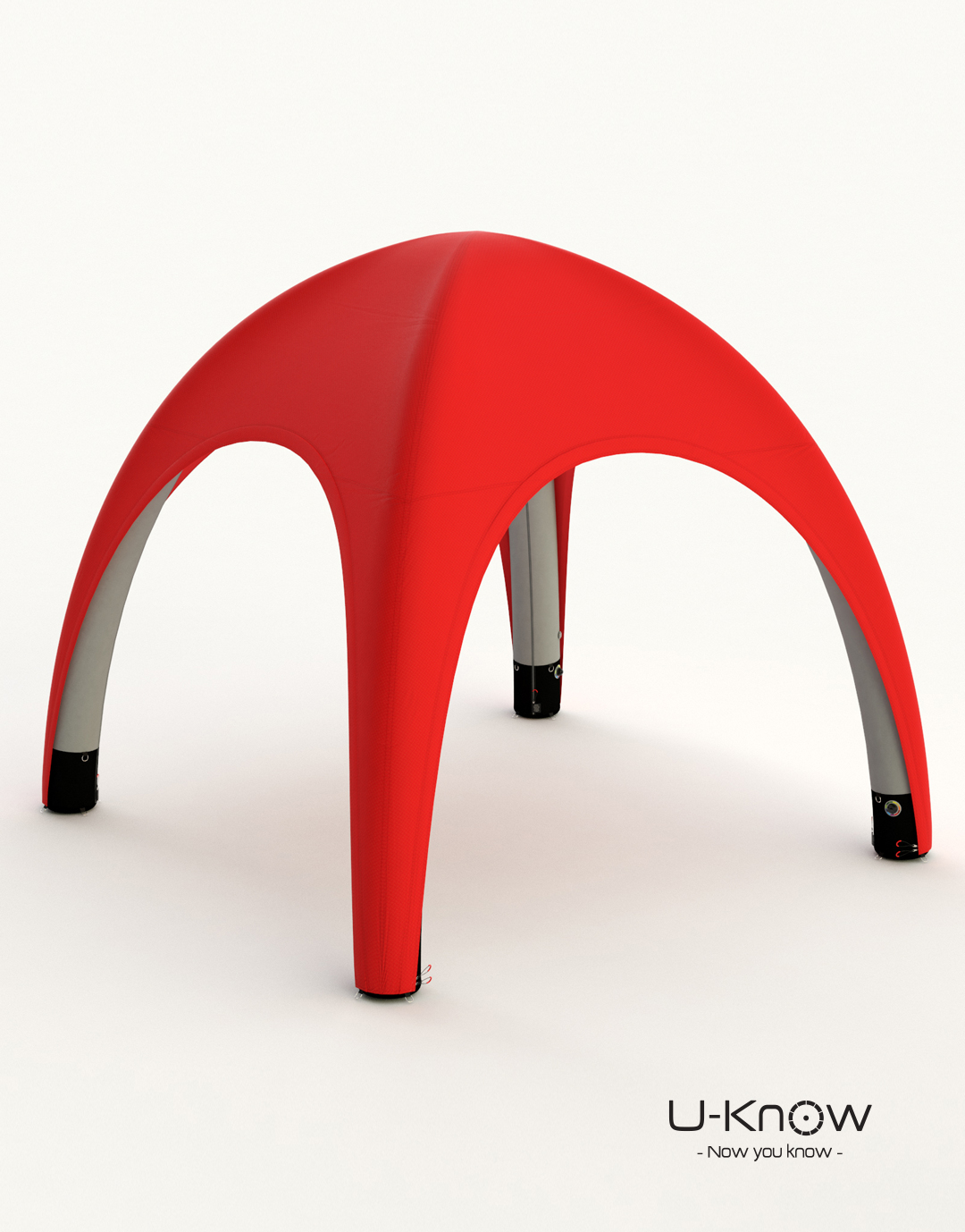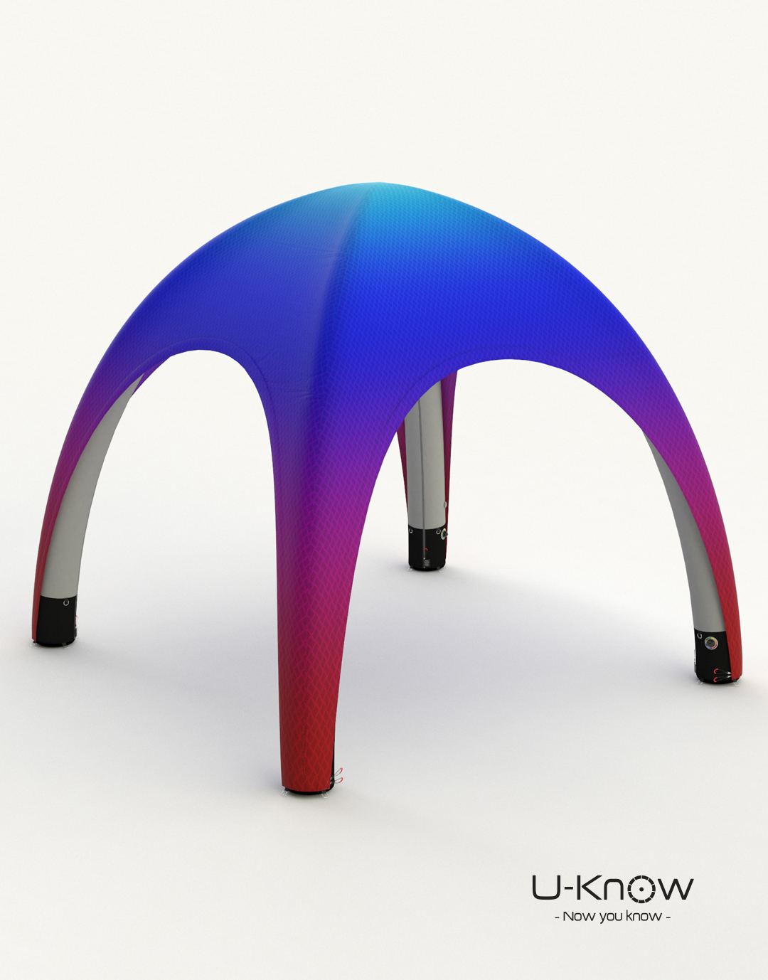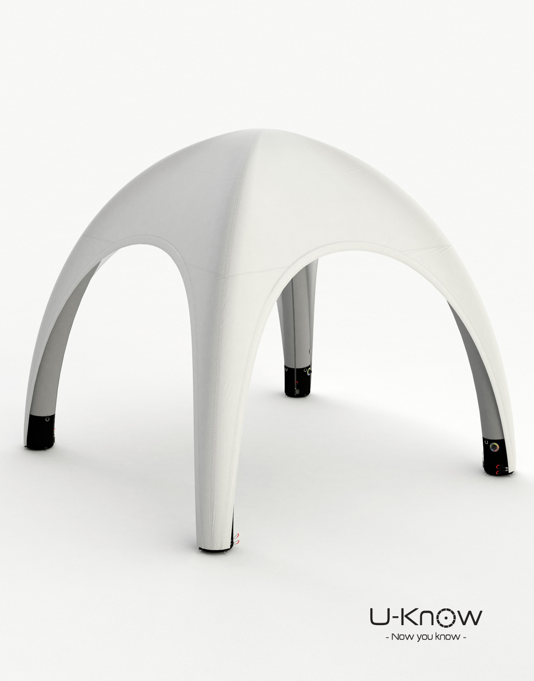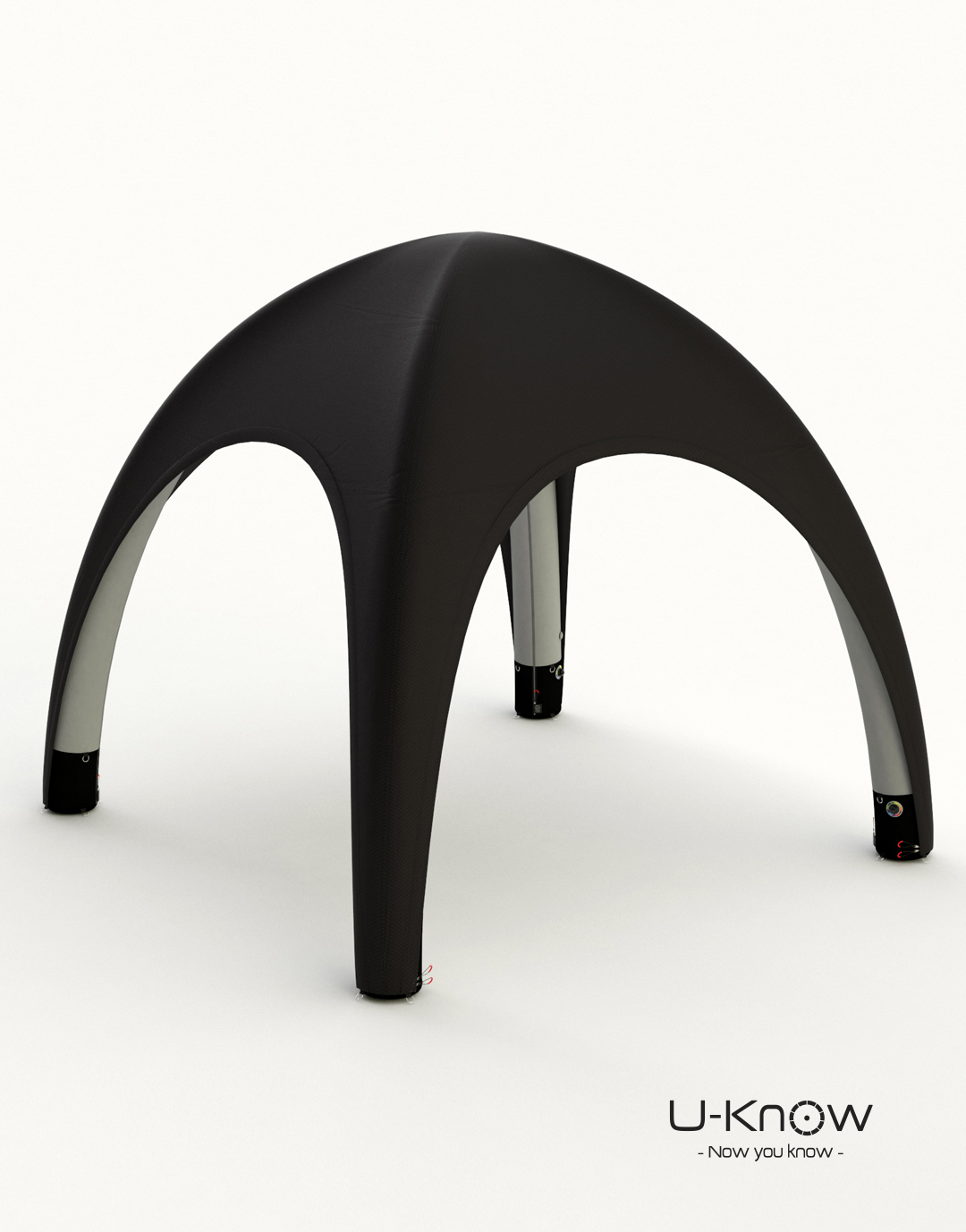 U-TENT 400, tente gonflable 4X4M de marque U-Know. La tente gonflable évènementielle est livrée avec son sac de transport, des sardines et des cordes de fixation ainsi que des poches lestables qui se placent à l’intérieur des pieds noirs pour garder l’esthétique de la tente. Cette nouvelle tente gonflable bénéficie d’une technologie nouvelle : d’un côté, une structure triple peau ultra-légère, de l’autre, un textile avec membrane garantissant l’élasticité, l’étanchéité et la personnalisation totale de la tente (finition ALLOVER). Toutes les coutures sont soudées et étanches. Traitement Anti-feu norme CPAI 84 pour utilisation en intérieur. Le montage est réalisable en 5 minutes. Possibilité de poser des transferts au format A3 sur le toit et au-dessus des portes.